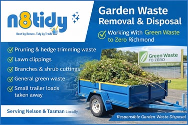 At n8tidy Limited, we don’t just tidy your garden — we take care of the waste too. We now handle garden waste removal and disposal, working directly with the Green Waste to Zero in Richmond to ensure all green waste is disposed of responsibly: