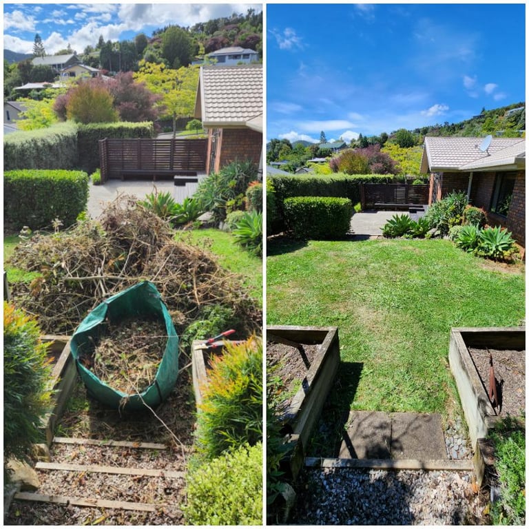 At n8tidy, we help residential and commercial customers transform overgrown, untidy areas into clean, structured, and easy‑to‑maintain spaces. This page showcases real examples of our cleanup, gardening, trimming, and light landscaping work across the Nelson–Tasman region, just a glimpse at the variety and quality of our latest residential garden care projects